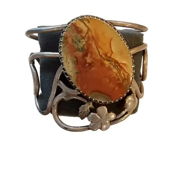 This stunning bracelet is a true piece of art. Crafted with care by hand, it features a beautiful oval-shaped polished stone that is sure to catch the eye. The stone is set in a...