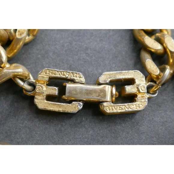 Vintage Signed Givenchy 1980 Heavy Bold Chain Necklace With Black Center & CrystalsType: NecklaceSize: about 15.25" from end to endSigned: Givenchy 1980Color: gold black clearCondition: good with some age appropriate wear to gold plating
