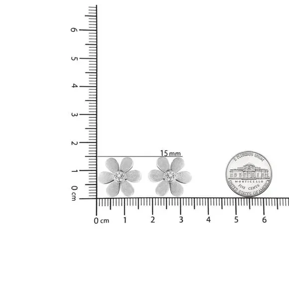 Celebrate your blooming love with these adorable diamond flower earrings made from .925 sterling silver and given a matte finish. Charming style for your sweetheart, these sterling silver floral earrings are embellished by a cluster of 10 pave set single cut accent diamonds at the center. These blossoms close with a secure clasp. Total diamond weight is 1/20 ctw. Care Instructionswipe clean with dry clothCountry of OriginIndiaAbout the BrandHaus of Brilliance is a fine jewelry manufacturer and wholesaler based in the historic Diamond District in NYC. We´ve been in the industry for over 25 years, and have a combined 100 years of diamond and jewelry experience. We believe that the beauty of jewelry comes from the science and the art of the product itself. We strive to maintain a strong, close-knit family feel to how we grow our business, and we´re proud to bring you the most beautiful products with the best value. New ProductCombined Dimensions: 15 x 4 x 15