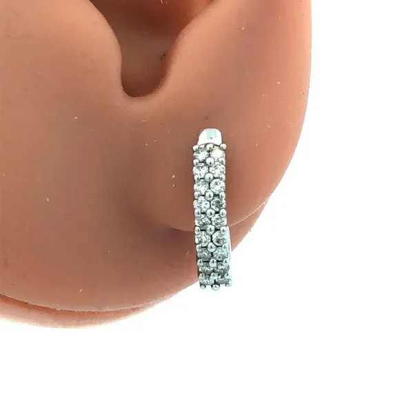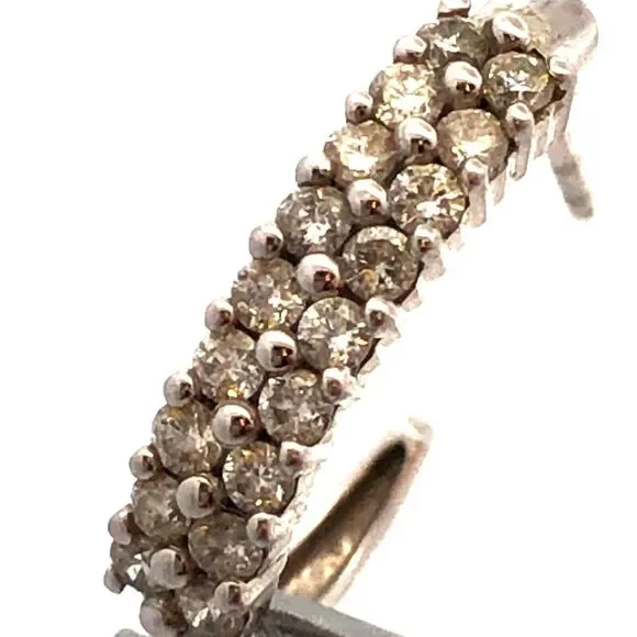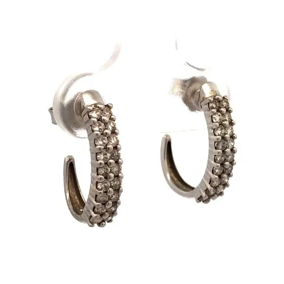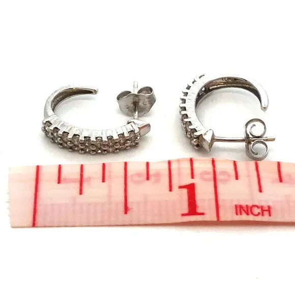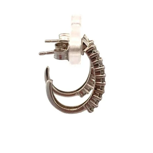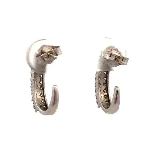 * Designer 10K White Gold Round Diamond Half Hoop Drop Stud Earrings* Length: 5/8"* Width: 1/8"* Weight: 2.0 tgw* 36 Round Diamonds measure approximately 1.5 mm each* Closure: Butterfly* Marked: 10K * Makers Mark * Condition: As pictured. * G4457