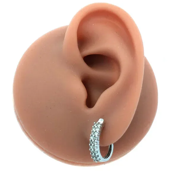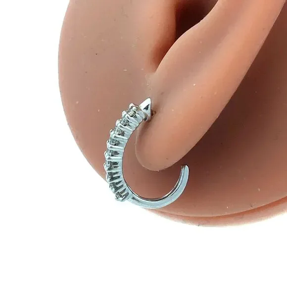 Designer 10K White Gold Round Diamond Half Hoop Drop Stud Earrings