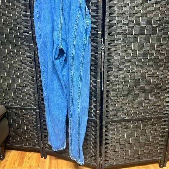 Vintage denim overalls corset style belt loops straight baggy design medium