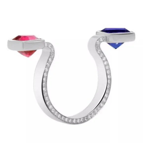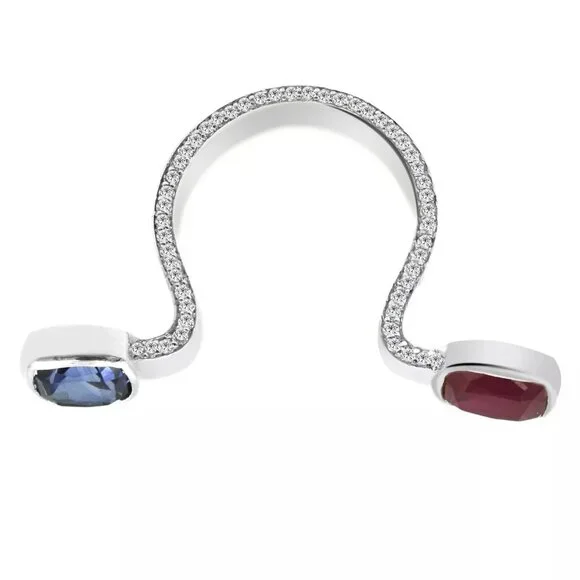 Unique 925 Sterling Silver 5.50Cts Ruby & Tanzanite Between The Finger Ring