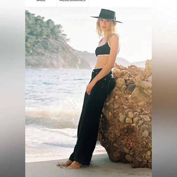 NWTCasual pants with soft silky touch fabric• Relaxed fit with high waistline• White colored stitching detail• Logo embroidery details on the back waistband• Model size: Small size / 168 cm Bust 34" Waist 25" hip 35"Waist 16”Rise 14” frontInseam 29”Leg opening 12”