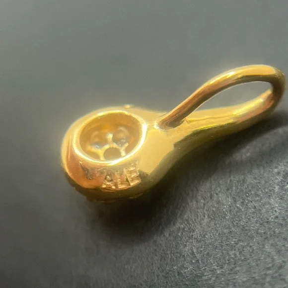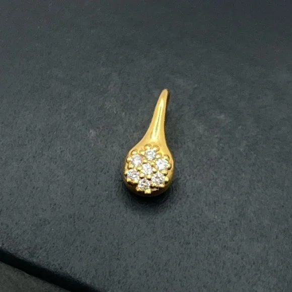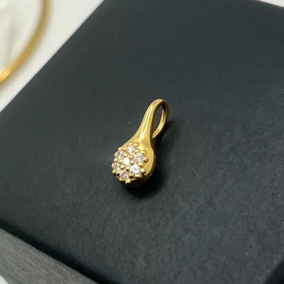 A cute, dainty luxurious authentic PANDORA 18K yellow gold pod charm pendant with real white round-cut diamond clusterMarked 750 ALE & Pandora symbol Tested using a gold metal...
