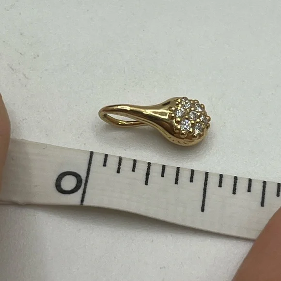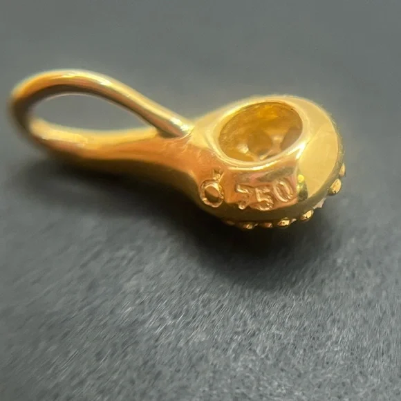 A cute, dainty luxurious authentic PANDORA 18K yellow gold pod charm pendant with real white round-cut diamond clusterMarked 750 ALE & Pandora symbol Tested using a gold metal analyzer machineWeighs 1 gramApproximately a little under 1/2 inch long