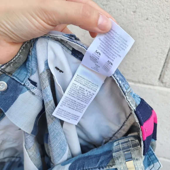 MotherSize 27Good pre-owned condition, has some wash wear. Tiny stain on back waist and left front hem. Thin fabric on back left pocketNo Zip Misfit in Army Blue Camo54% cotton,...