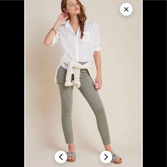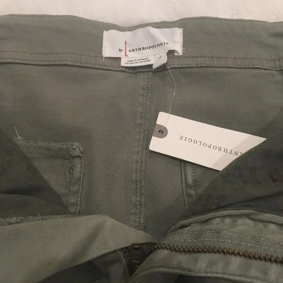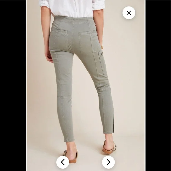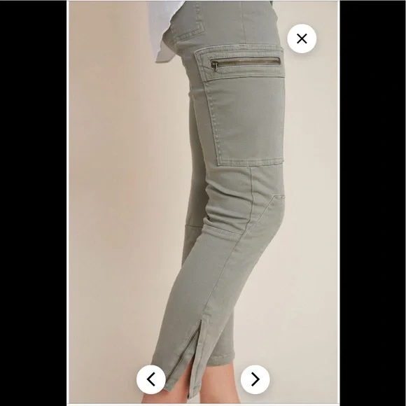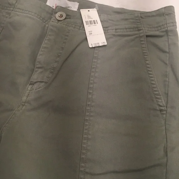 Cotton , spandex Skinny fit Side slant and back patch pockets Zip front Size 29 standard Measurements:laying flatwaist 16” hips 18” rise 10” inseam 26” Color slate Machine wash Imported Size 29 standard NWT
