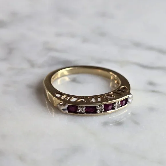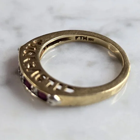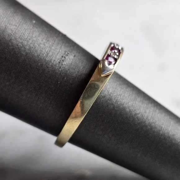 Womens Vintage Estate 10K Yellow Gold Diamond & Ruby Love Ring 2.8g E6553