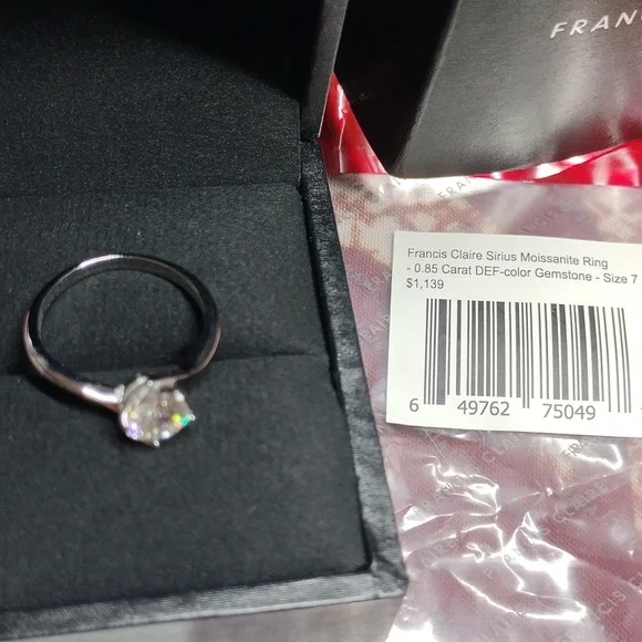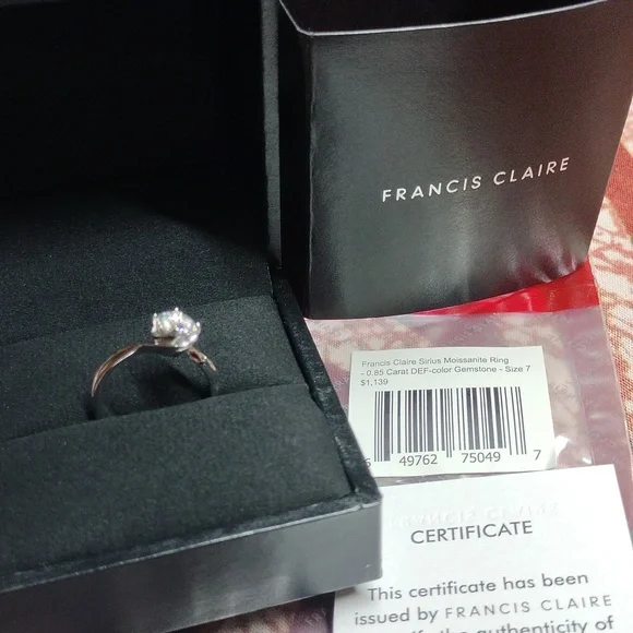 FRANCIS CLAIRE AUTHENTIC W/ CERTIFICATE~ Sirius Moissanite ring, sz7~0.85 carat
