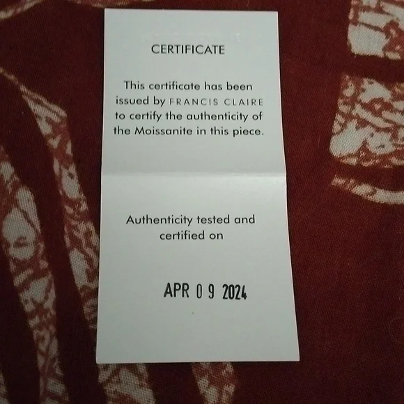 April 09,2024 , this piece of art authenticity was issued certified 0.75 caratD.E.F color gemstone sz 7