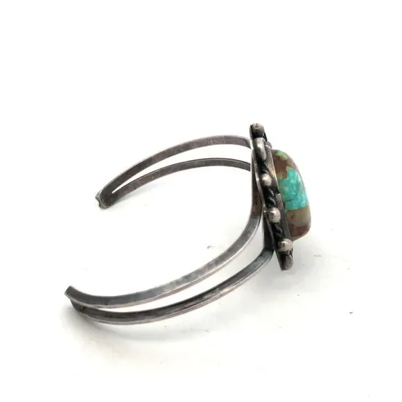 Vintage 925 Sterling Silver Cabochon Turquoise Open Cuff Bracelet