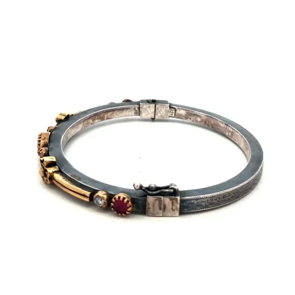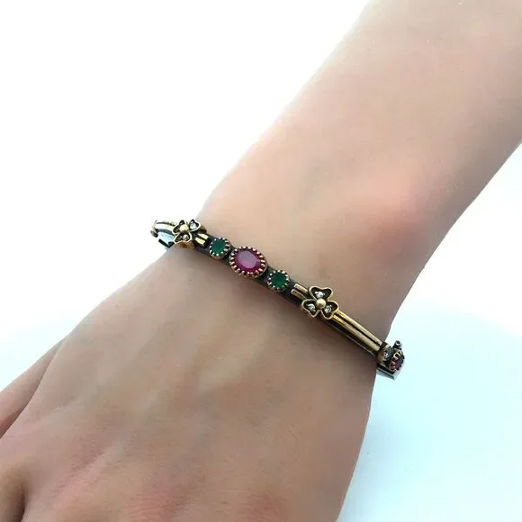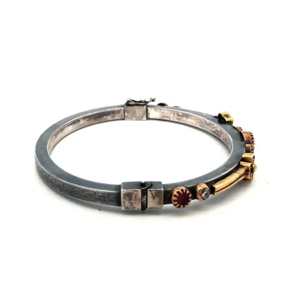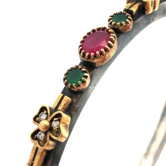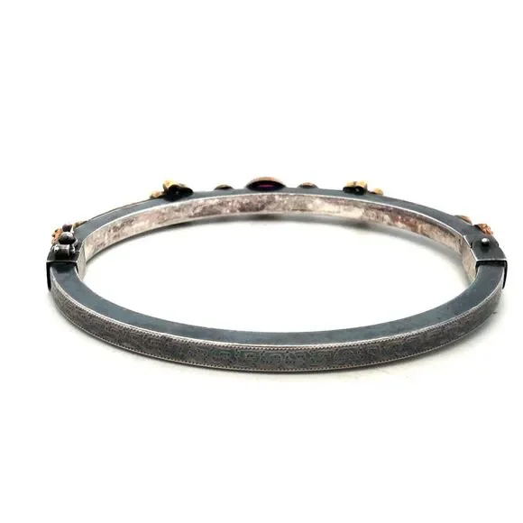 Vintage 925 Sterling Silver Ruby Emerald White Amethyst Hinged Bangle Bracelet