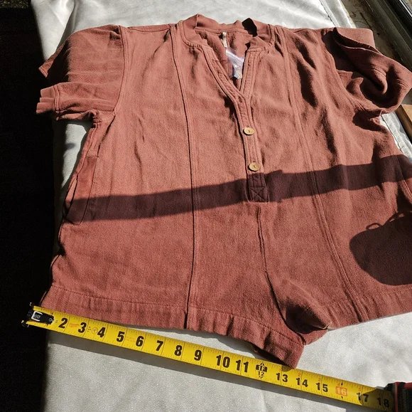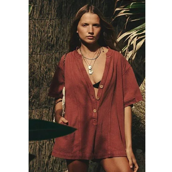 NEWColor - Maple SyrupA cozy done-in-one from our free-est collection, this effortless romper will be a beach bag staple for seasons to come.Fit: Relaxed, shapeless fit throughoutFeatures: Notched henley neckline, seaming throughout for shape, dropped shoulders Effortlessly thrown over your swimwear or off-duty with sneakers, this is a true shore-to-street go-to.CareMachine Wash ColdContents100% Cotton
