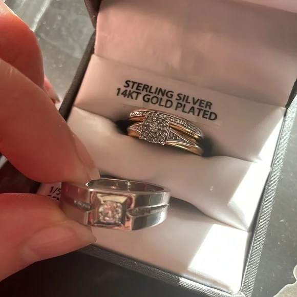 Sterling silver 14KT Gold plated 1/5 CTTW Diamond trio set