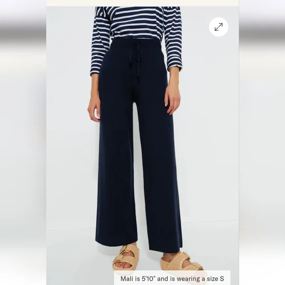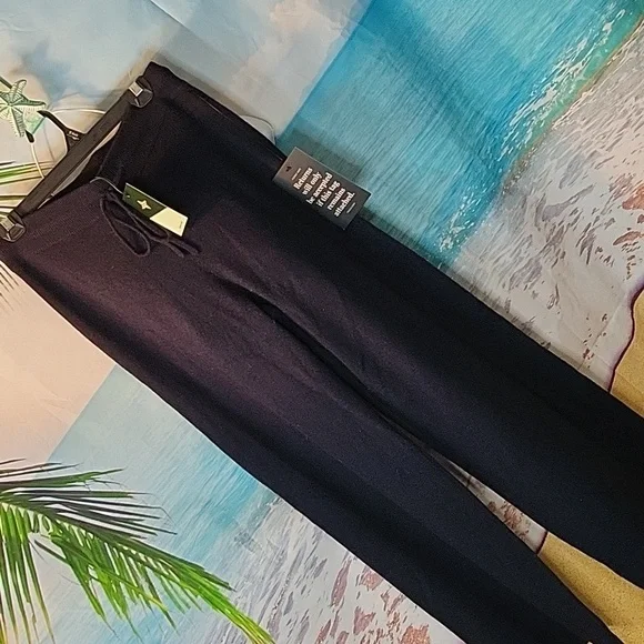 Discover the perfect blend of style and comfort with Tuckernuck´s wide leg all cashmere pants. Featuring a high-rise, tie string waistband and a relaxed fit, these pants are ideal for both lounging and casual outings. This item is new with tags, they are a very dark navy (almost black) these have a amazing feel and are super comfortable! inseam 31 inchThese retail for $198, I have them priced at a nice deal.Model is wearing a lighter color so you can see the detail better.smoke freefast shipperTrusted honest seller Ambassador Gold
