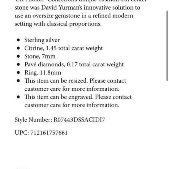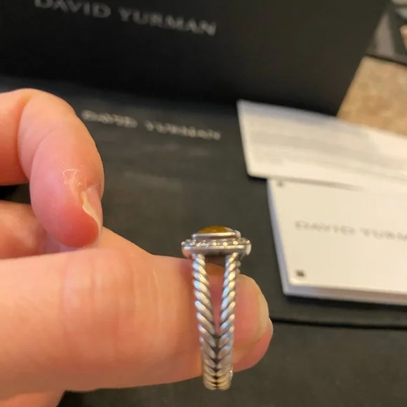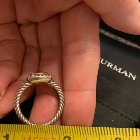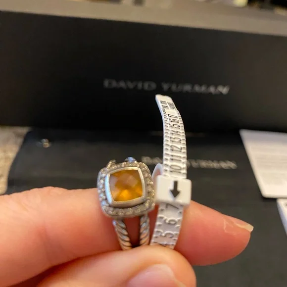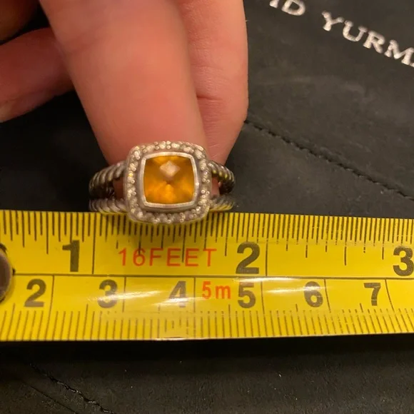 Petite Albion® Ring inSterling Silver with Citrine and Pavé Diamonds7mm. I believe to be a size 7 see photo. Can be resized. David Yurman I used cleaning cloth included.See original receipt photo