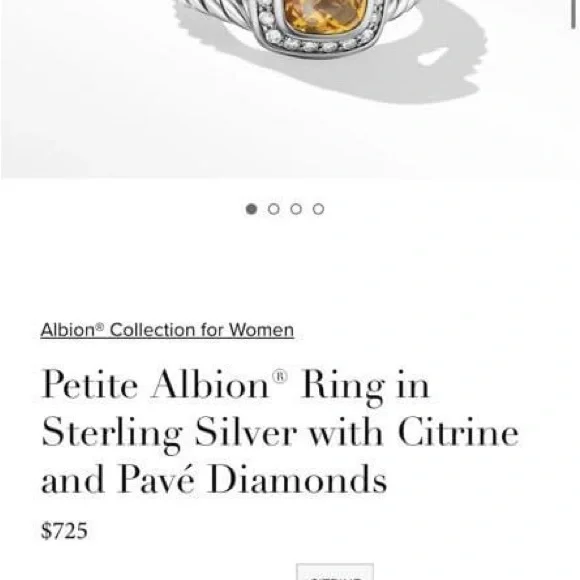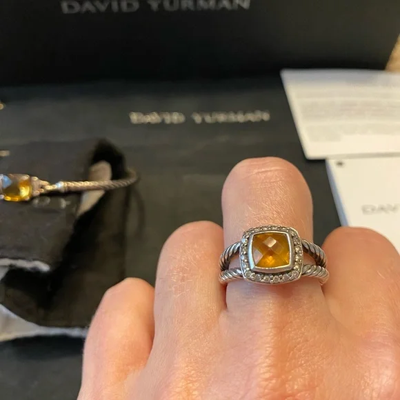 Petite Albion® Ring inSterling Silver with Citrine and Pavé Diamonds7mm. I believe to be a size 7 see photo. Can be resized. David Yurman I used cleaning cloth included.See...