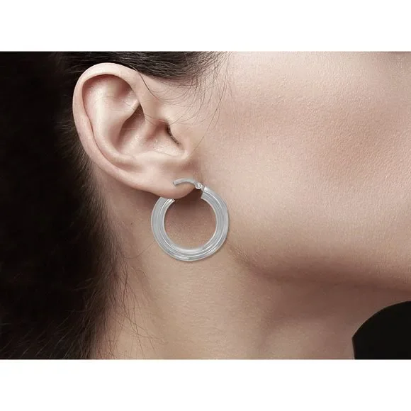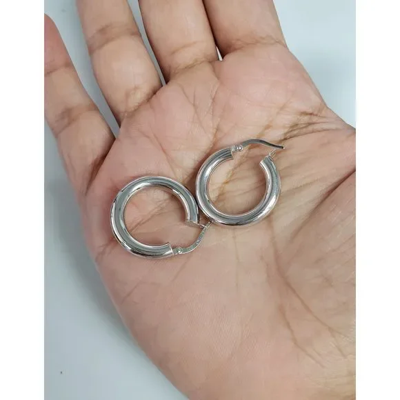 ♥ Product Summary ♥Details: Polished Hollow HoopsMetal: 14K White Gold Size: 24mmWidth: 4mmWeight: 3 gramsClosure: Snap closure