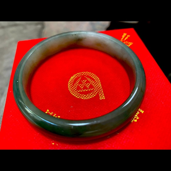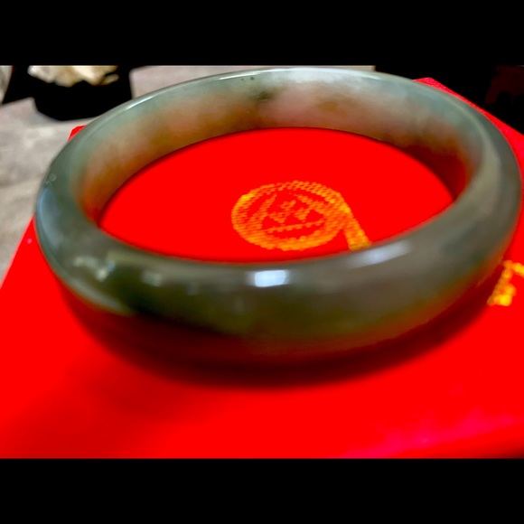 Authentic Jade Bracelet purchased in China from certified jeweler. Hand carved and never worn. Outside measurement 2.75 and inside 2 inches. It is a solid piece of jade, no glaws or imperfections. This piece is authentic no dyes or enhancements. A stunning piece for any jewelry collection