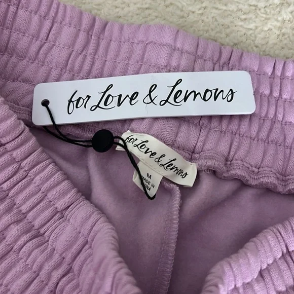 NWT For Love and Lemons JoggersColor: PinkGathered waist with Drawcord Gathered cuffsHigh riseSuper soft fabricMeasurements are included in the pictures
