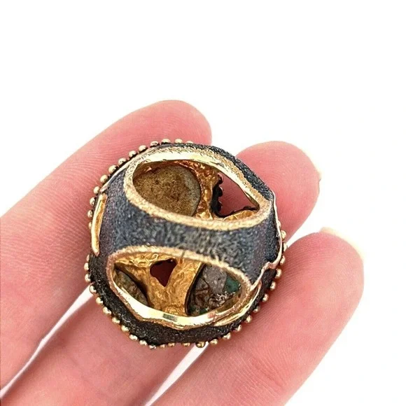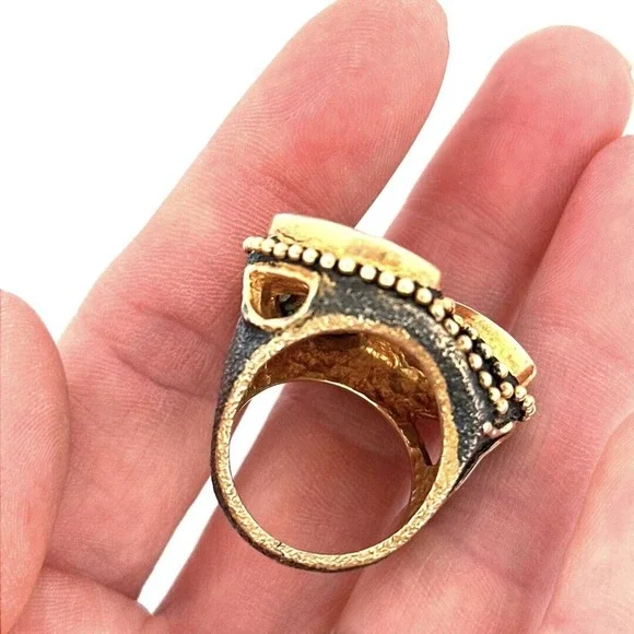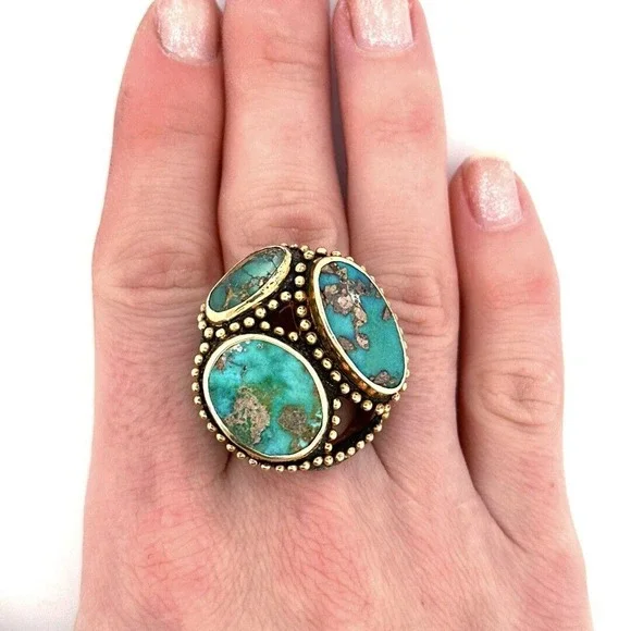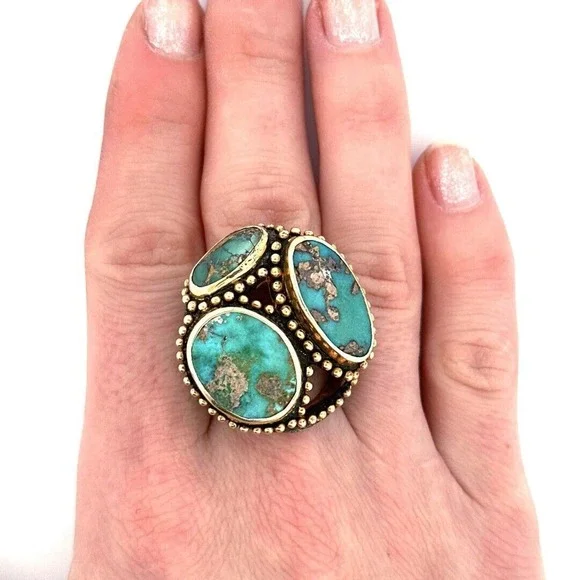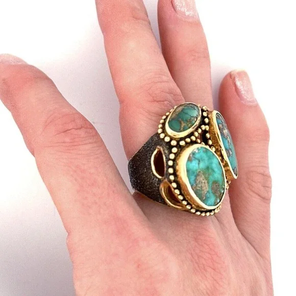 Vintage One Of A Kind Design Persian Turquoise Vermeil 3 Stone Statement Ring
