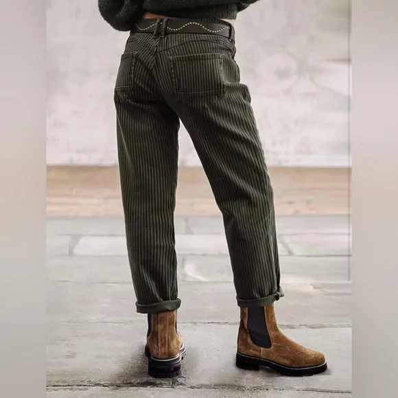 Straight Leg Mid Waist Vintage Cropped Stripe Barrel Stretchy Jeans Without Belt