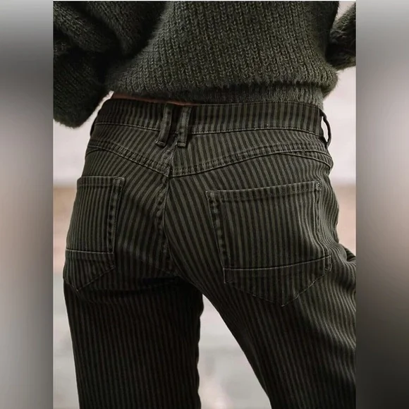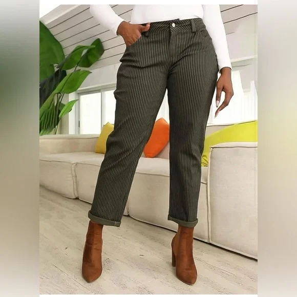 Stylish black pinstripe pants. Perfect for any occasion. Comfortable fit.Brand SizeUS SizeWaist (in)Hip (in)Inseam (in)Outseam (in)Rise (in)Back Rise (in)Knee (in)Leg Opening...
