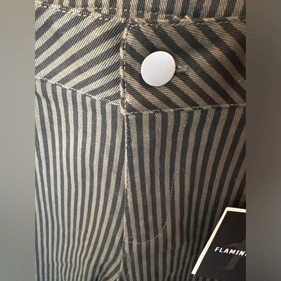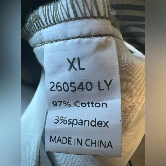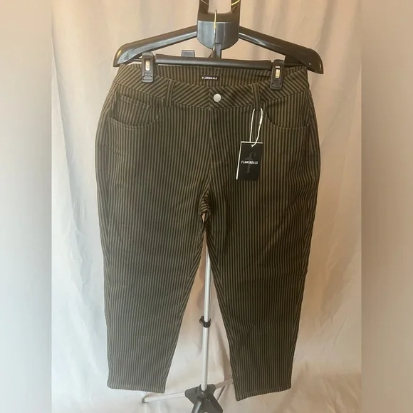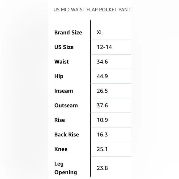 Stylish black pinstripe pants. Perfect for any occasion. Comfortable fit.Brand SizeUS SizeWaist (in)Hip (in)Inseam (in)Outseam (in)Rise (in)Back Rise (in)Knee (in)Leg Opening XL12-1434.644.926.537.610.916.325.123.8