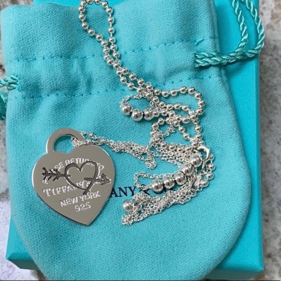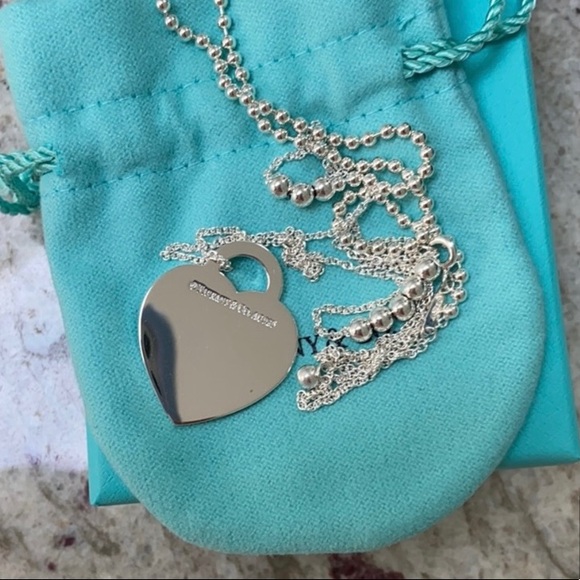 Tiffany&Co sterling silver heart necklace on a mixed bead chain. Adjustable 28-30” brand new sold with pouch, box and ribbon.