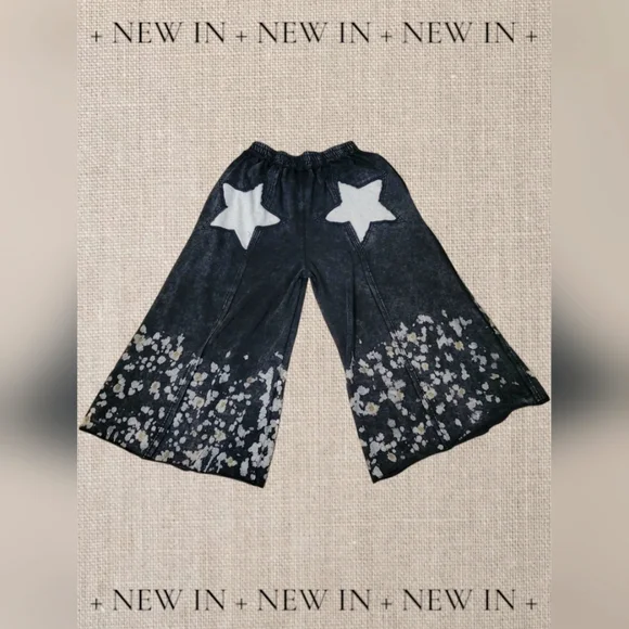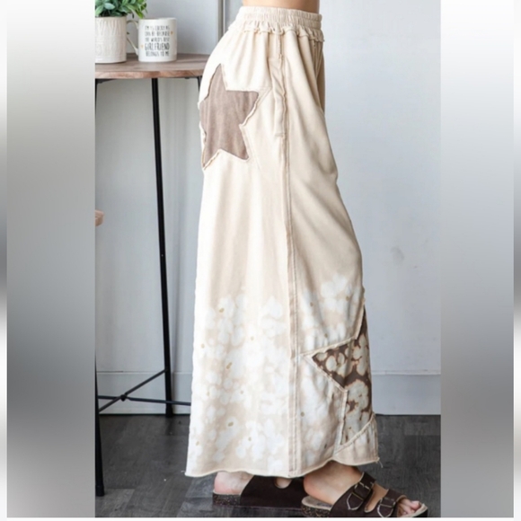 Oli & Hali NEW French Terry wide Leg pants, Star patches XL