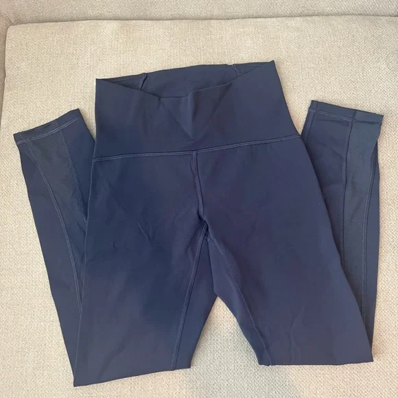 Stylish blue leggings. Perfect for workouts. Comfortable fit.