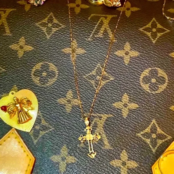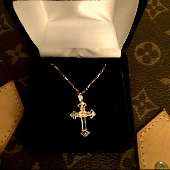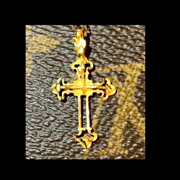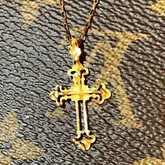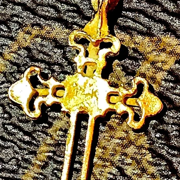 Beautiful Vintage 14k Yellow Gold Cross with a 20” Paperclip Chain ❤️This piece is really beautiful as it is diamond cut and has sort of an imperfect quality about it that...