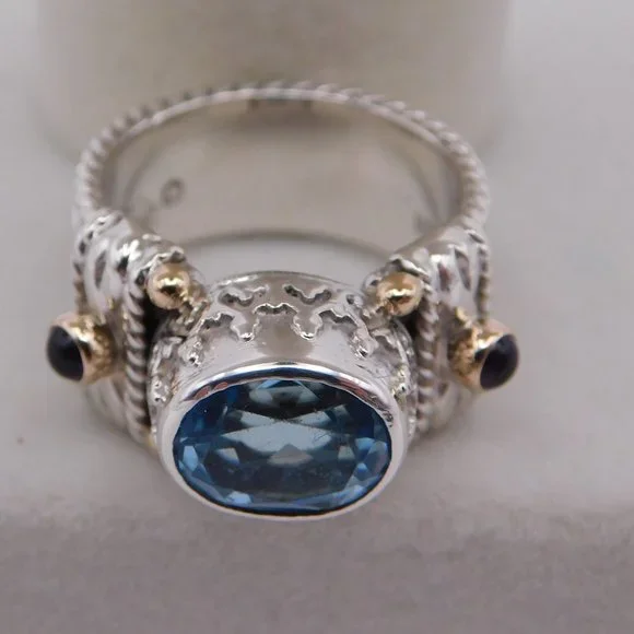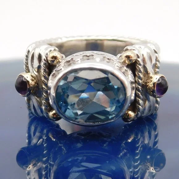 REVE 925 & 14K BLUE TOPAZ AND AMETHYST RING - SIZE 5.5
