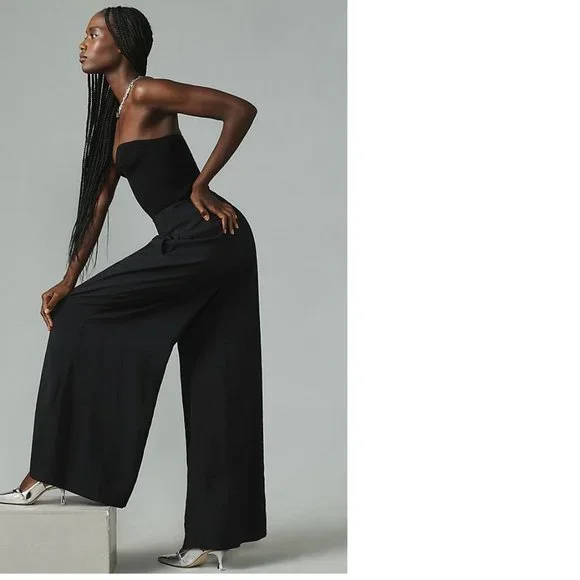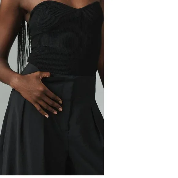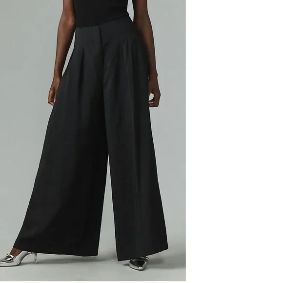 By Anthropologie High-Rise Pleated Wide-Leg Trouserspants black colornew