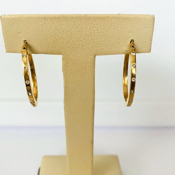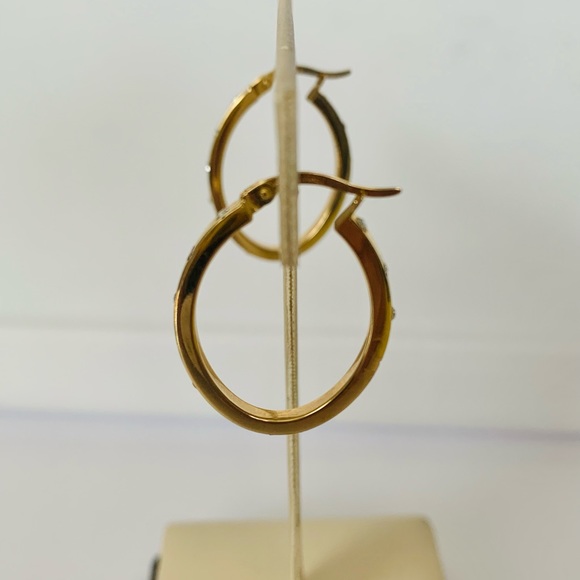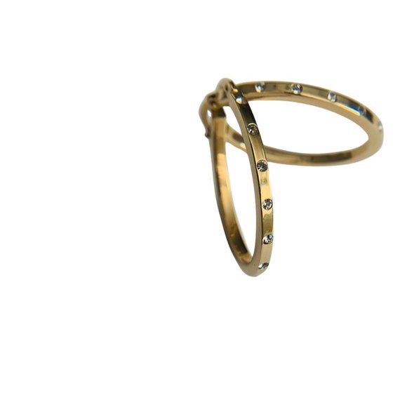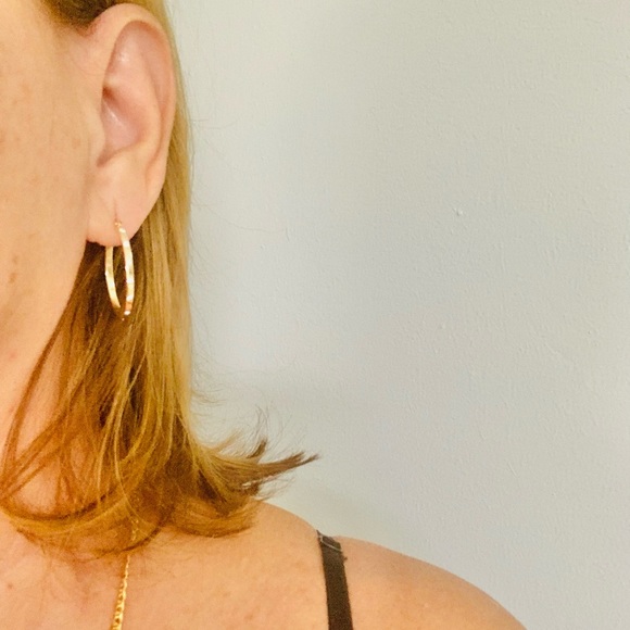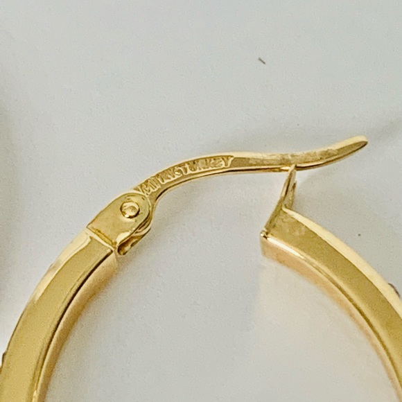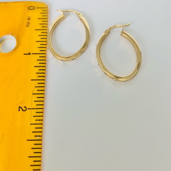 14k Gold Oval Hoops with white Zircon 1 long with latch closure. Suede gift bag included.Only one, ready for shipping.