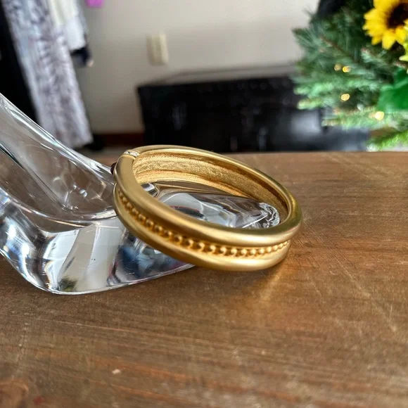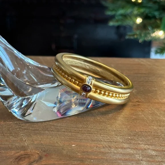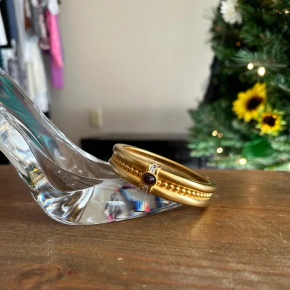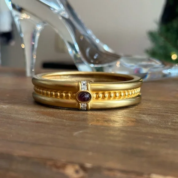 In pristine condition!Beautiful 8" 80´s circa vintage, signed Givenchy Etruscan Revival bangle! Matte gold tone; adorned with a cabochon amethyst and CZ band.This was a...