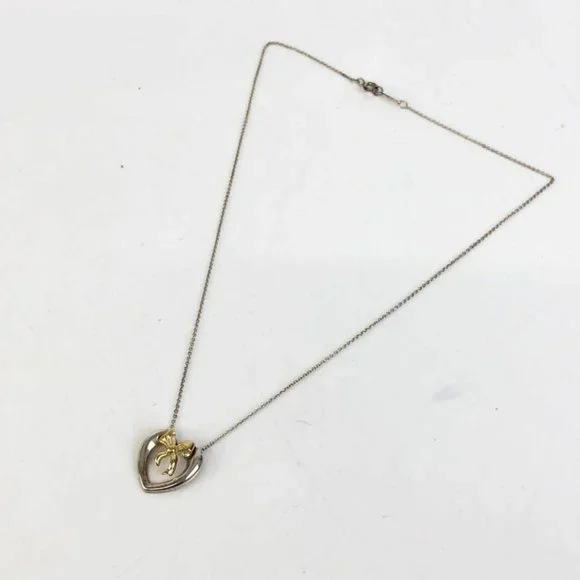 TIFFANY & Co. Ribbon Bow Heart Necklace 18K Yellow Gold & Sterling Silver