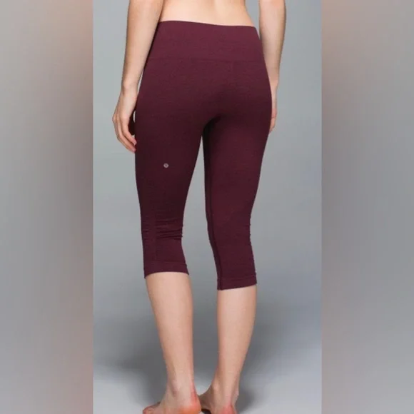 EUC Lululemon In The Flow Crop II Womens Small Heathered Bordeaux Drama Leggings