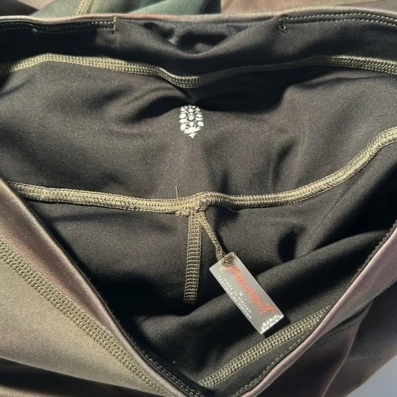 Free People Movement High-Rise 7/8 Beat The Heat Reversible Leggings Bring the heat to your next workout in these so bold and reversible (!!!) leggings. Featured in a sleek high-rise design that turns inside out to reveal a different color… Smoked Olive Wash reverses to Black.The Fit: High-rise waistband; 7/8 cropped lengthThe Feel: Lightweight, sleek and buttery with a soft and stretchy finishThe Features: Reversible inside-out to reveal an alternate style; raw cut hemWhy We <3 It: Two looks in one!FP Movement: A destination for life well-lived, Free People Movement offers performance-ready activewear, practice-perfect styles and beyond-the-gym staples. We believe in the power of community, in supporting and lifting each other up and always #movingtogether.Care: Machine Wash ColdContents: 51% Nylon, 36% Polyester, 13% ElastaneColor: Black/Smoked Olive WashSize: MNWT Import