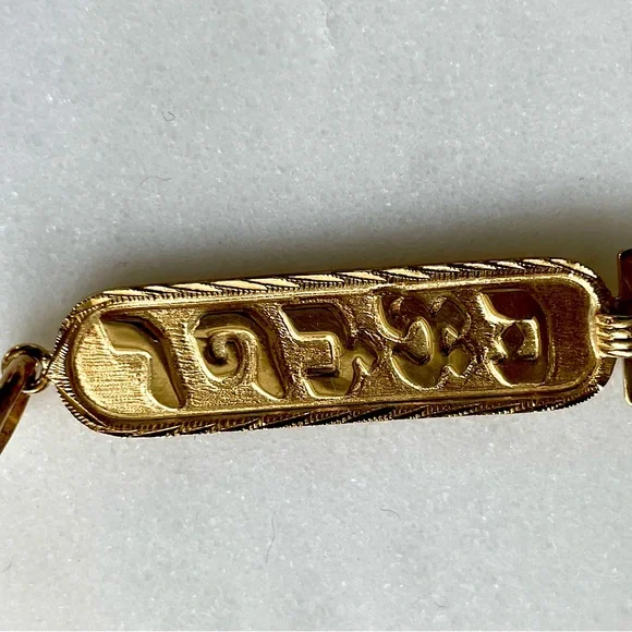 Vintage 18K Yellow Gold Cartouche Egyptian Engraved Pendant