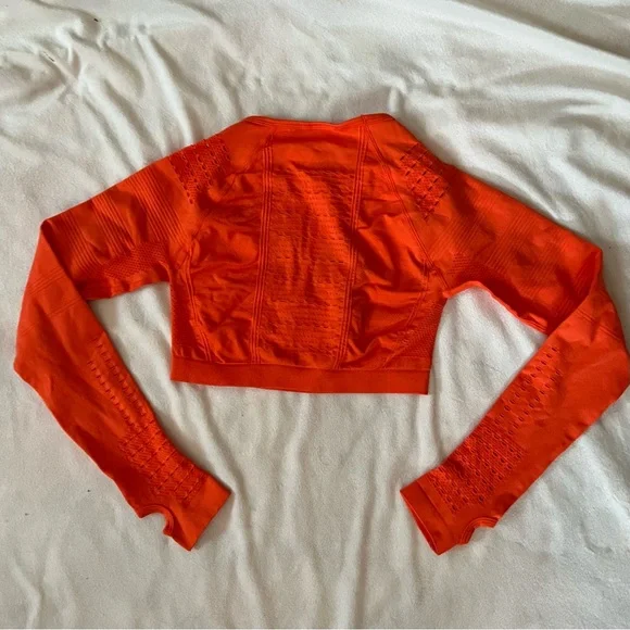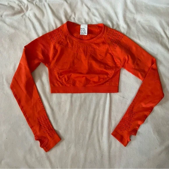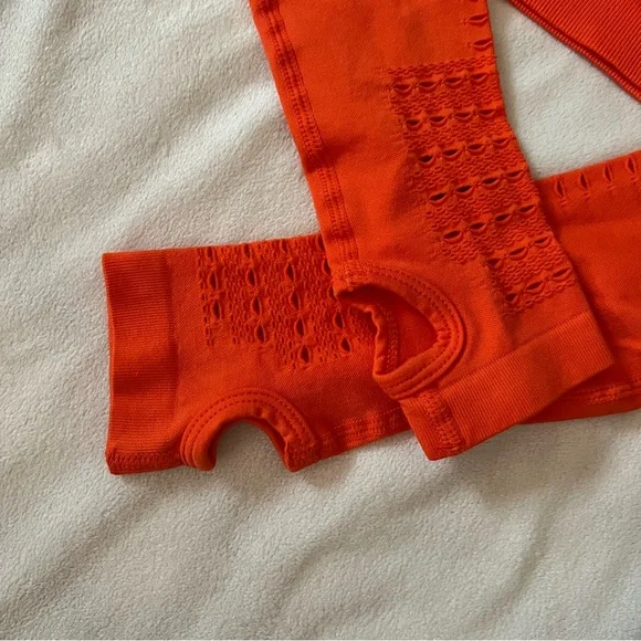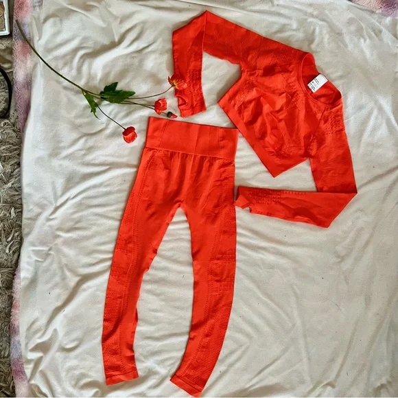 Item: Athletic SetBrand: Boutique Size: SmallColour: Vibrant OrangeFeatures: Leggings Have Compression, Breathable Design & Small Laser Cutout Design All Over. Shirt Is Cropped, Has Full Length Sleeves, Small Laser Cutout Design & Breathable DesignMaterial: 92% Nylon 8% SpandexCondition: New Without Tags, Never Worn. No Holes, Stains Or Tears Measurements:Leggings Length: 31.5”Inseam: 22”Rise: 9.5”Waist: 22”- 28”Shirt Length: 12”Bust: 26”- 36”Shoulder: 15”Sleeve: 21”
