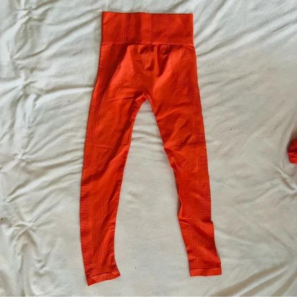 Item: Athletic SetBrand: Boutique Size: SmallColour: Vibrant OrangeFeatures: Leggings Have Compression, Breathable Design & Small Laser Cutout Design All Over. Shirt Is Cropped,...
