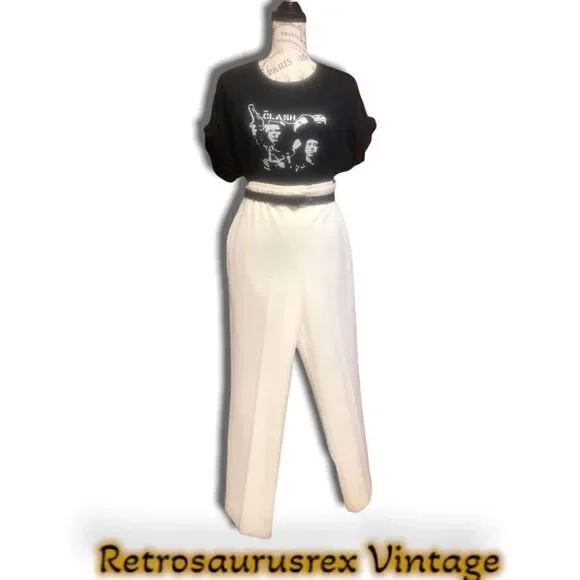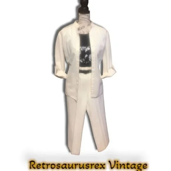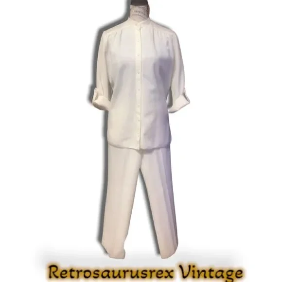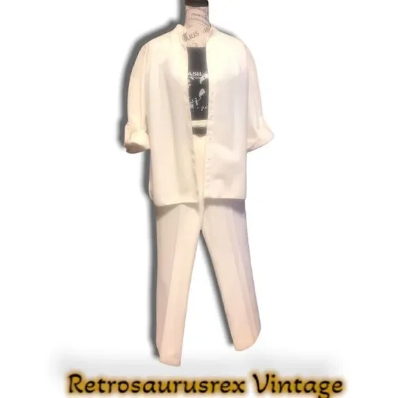Vintage 1960’s Funky Lemon Cream Shirt & Pants Set,2 PieceThis stretch polyester dream is right out of the late 60’s, early 70’s.Fabric color is a lemon cream / off-white stretch polyester.Pants•Elastic waist•High waist•regular fitShirt•Button up w/ cream buttons•3/4 length cuffed sleeves•Mandarin band high collar•oversized boxy fit•Side slits•Pleated collarbonesExcellent preowned vintage condition. No notable flaws.Belt, shoes, & tshirt sold separately.Please refer to measurement guide to ensure a perfect fit Brand CM of Californiamodern XL extra LargeBust 44Waist 342Length 28.5Waist 32-36Inseam 28Front rise 13, back 14Cuff circumference 20Retrosaurusrex Vintage; that 70’s show; outfit; suit; pants suit; jumper; indie; loungewear; mod; modcloth; bootcut; flare; bowie; Chinese pajamas ; xl; two piece jumpsuit; Pantsuit; 1960; 1970; 60’s; disco; hippie