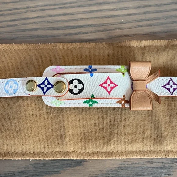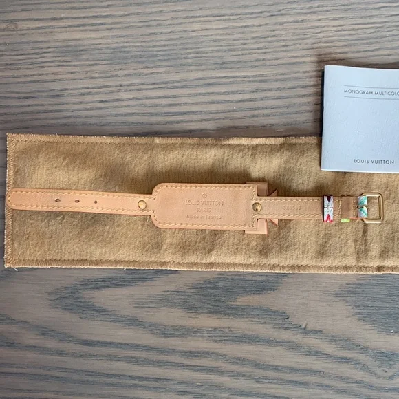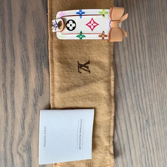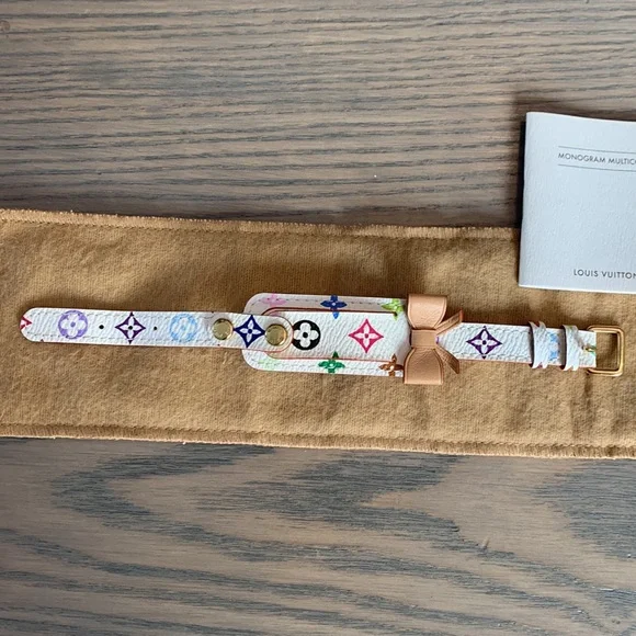 Rare like new, LV Monogram multicolor brasserie Porto address bracelet in white. M92594. Comes with original dust bag and book.