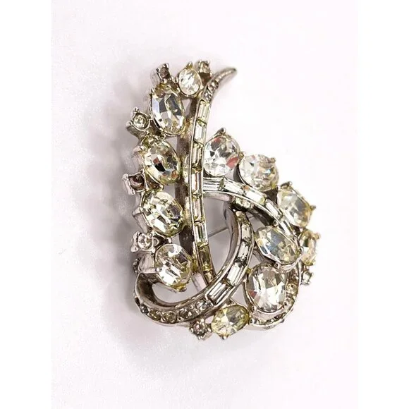 VtgRhinestone Brooch Baguette Round Oval Cut Crystals Huge Stunning 1940s Pin Vintage Costume Jewelry We have several rhinestone/crystal brooches in our vintage collection of...