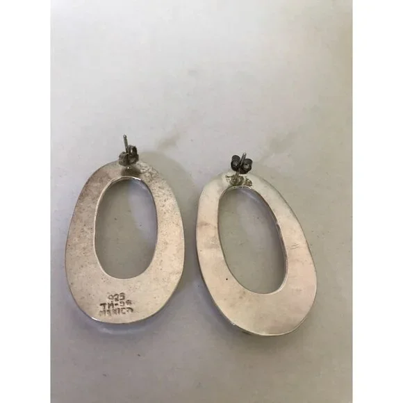 Vtg Large Dimensional Oval Pierced Earrings Stamped Mexico 925 Sterling Silver 21. Grams We have a large collection of vintage earrings.Purchased in Tlaquepaque, Mexico in 1973....