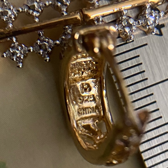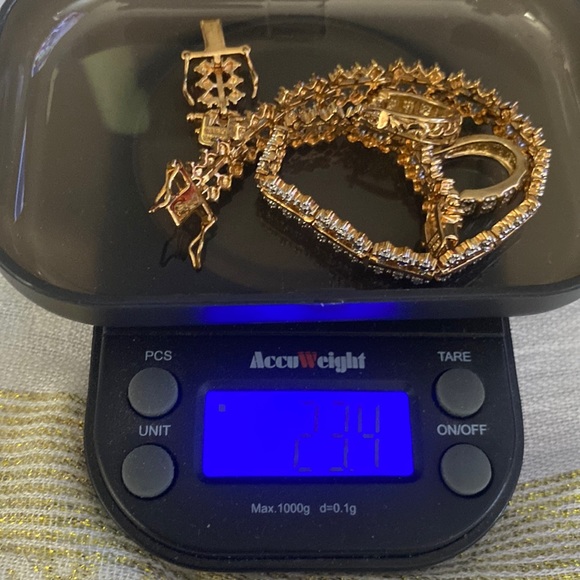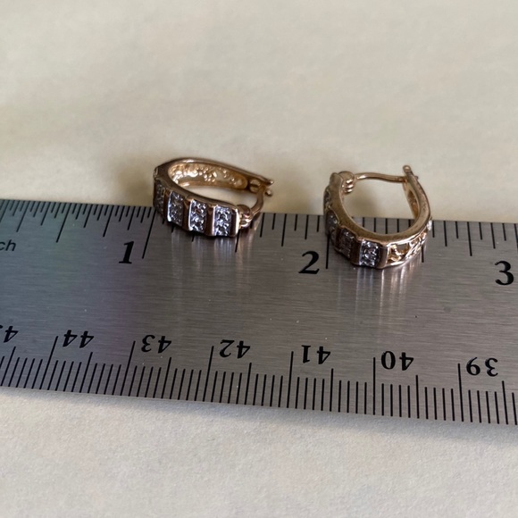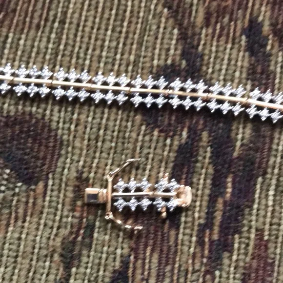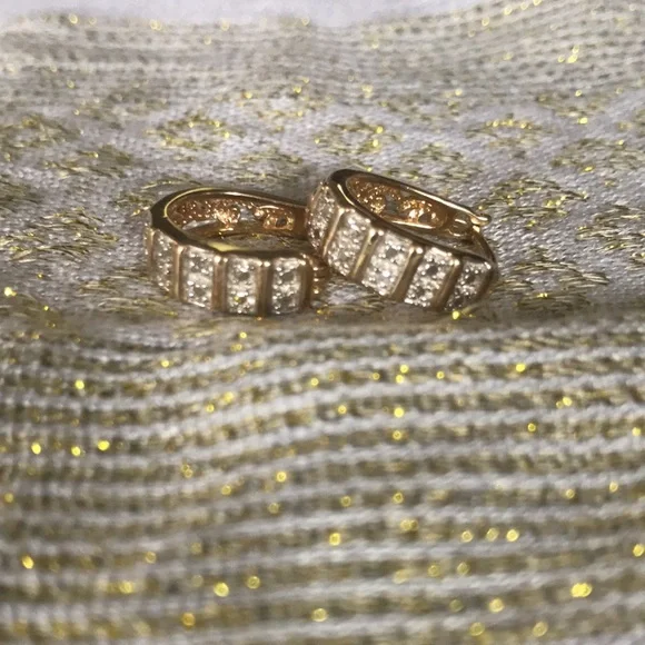 14k Gold Over Sterling Silver- Ross Simons 6 Diamond Chips & Illusions bracelet 7.1/2” plus 1” adjustable piece L:8.1/2” bracelet combined. Weighs:18.9g & Hoop Earrings 1 Pair Huggies’ Gold Over Sterling Silver Earrings With 1 Diamond each & Illusions Throughout Ross Simons- weiighs:4.6g. Both items weighs:23.4g combined (Sterling silver with diamonds). Some parts of the gold looks slightly dark due totesting for type of metal. Preowned. This beautiful exquisite 2p/c set is in great condition! Ideal for formal wears! It would be a unique addition to your classic jewelry collection or a fantastic gift for someone special! If you’re interested in purchasing this item, please send an offer! I’ll accept or counter offer! Thank you!