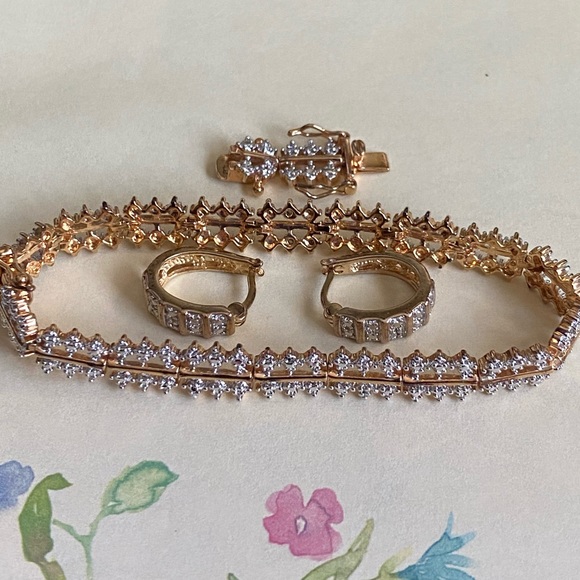 14K GF Sterling Ross Simons Diamond Accent7.1/2”Tennis Bracelet+ Earrings.