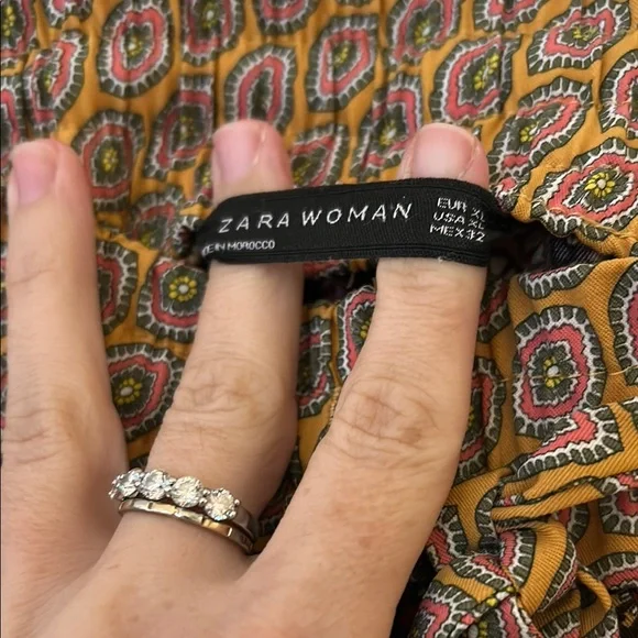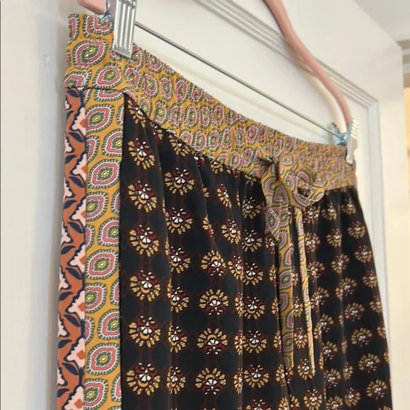Bold yellow fabric with red and gray patterns. Ideal for unique fashion pieces.